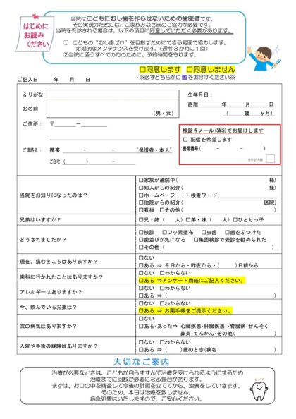 子どもの問診票